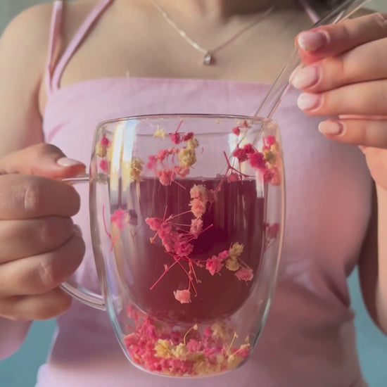 This 350ml dried flower glass cup blends delicate floral charm with modern double-wall insulation, keeping your drink at the perfect temperature while looking stunning on your table.
